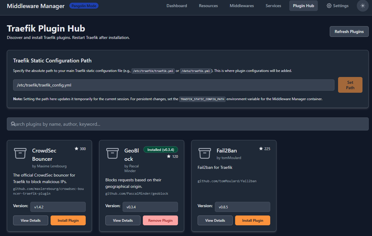 but in my Traefik Plugin Hub page, only geoblock appears as installed.