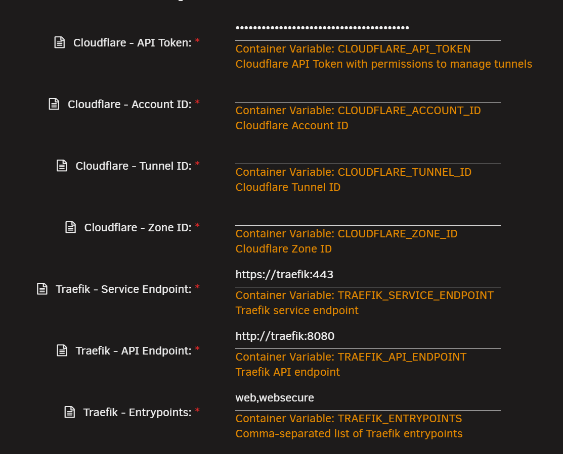 Ok, for cloudflare tunnels I only got this in the extra parameters: tunnel --no-autoupdate run --token={YOUR CLOUDFLARE TUNNEL TOKEN}